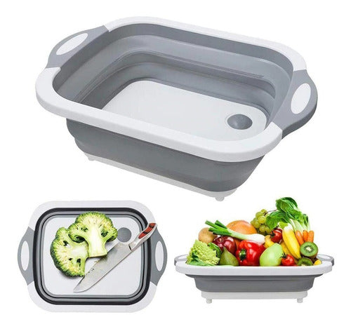 Lavado: tabla de cortar, canasta para lavar vegetales, canasta de drenaje en un solo aparato de cocina. El colador está diseñado sobre el fregadero o la mesa para limpiar verduras, frutas, tazones y guardar suministros de cocina.